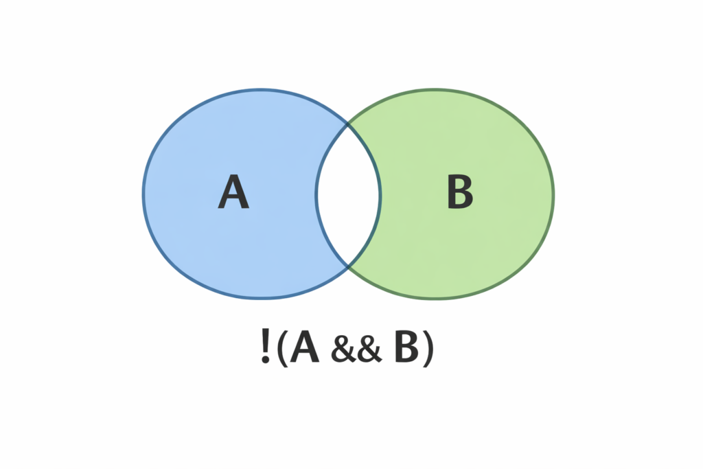 !(A && B) → !A || !B | AとBが同時に成立しない(どちらか一方がダメならOK) |